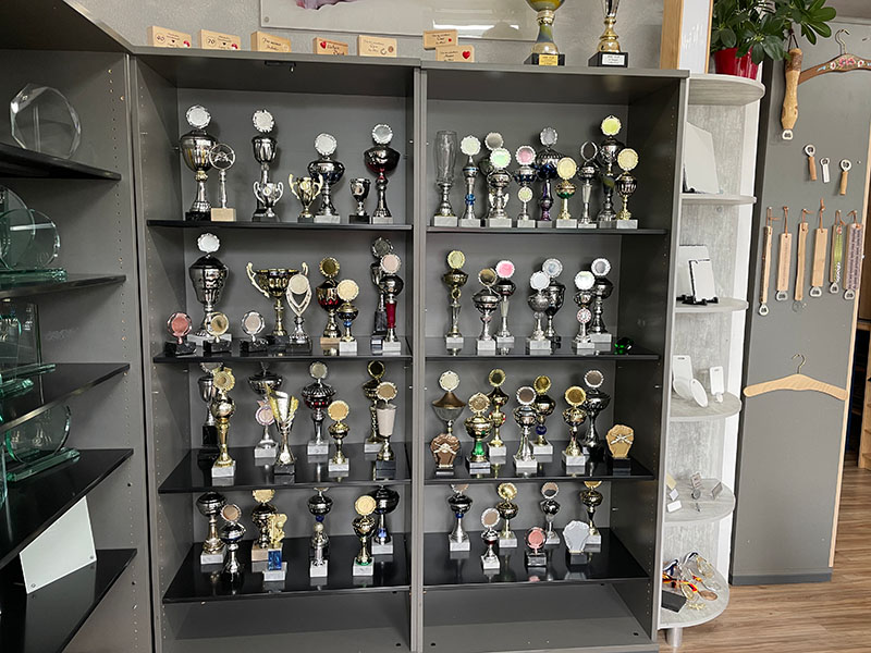 Wir fertigen hochwertige Urkunden, Pokale, Medaillen und Schützenscheiben, die bei besonderen Anlässen und Ehrungen in Ihrem Verein für Anerkennung und Auszeichnung sorgen. Unsere individuell gestalteten Auszeichnungen aus hochwertigen Materialien verleihen jeder Veranstaltung eine professionelle Note. Vor Ort halten wir eine große Auswahl an Pokalen bereit, damit Sie die perfekte Auszeichnung für Ihre Veranstaltung finden.